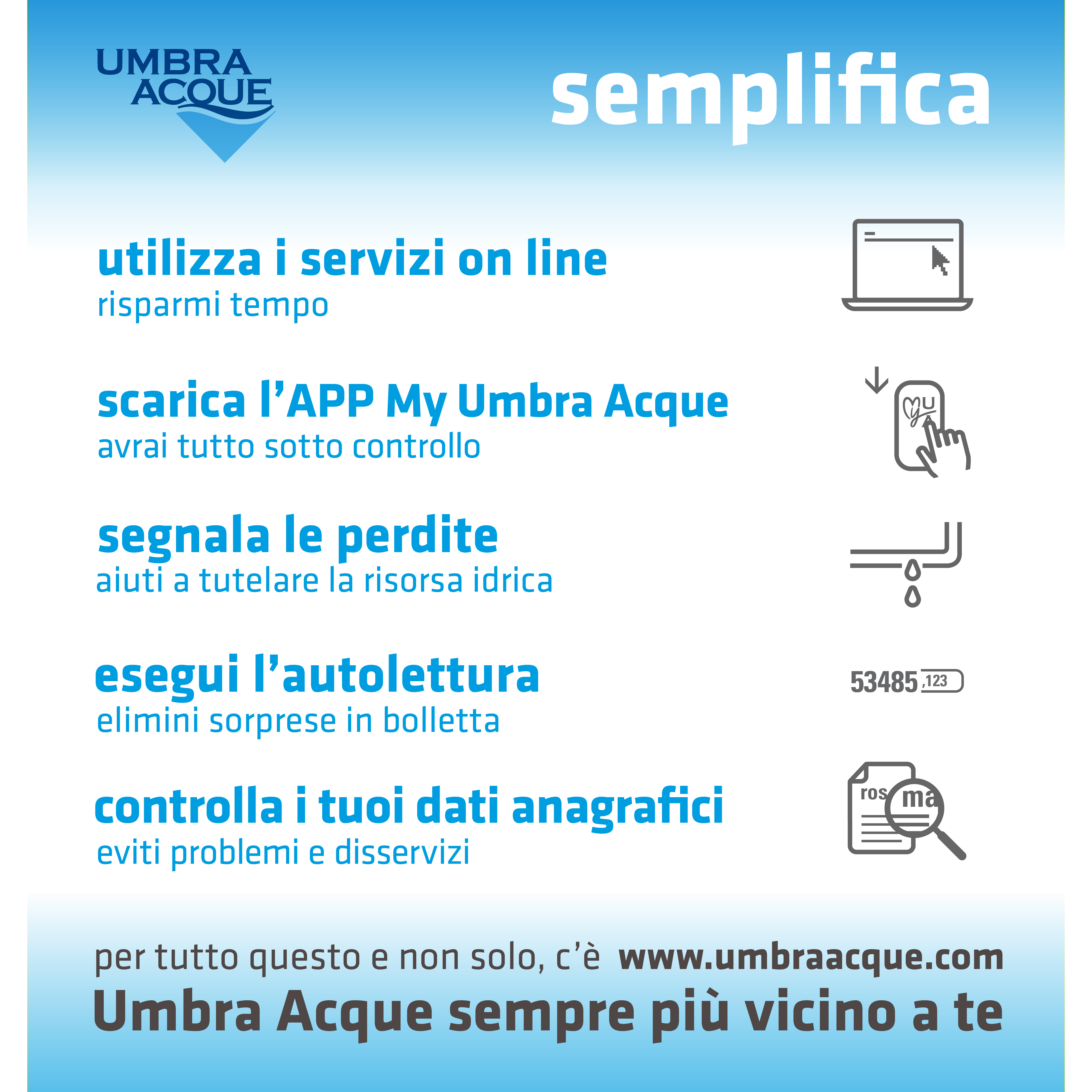 Stampa Condividi Facebook Twitter Whatsapp Telegram Email UMBRA ACQUE: CAMPAGNA DI COMUNICAZIONE"SEMPLIFICA" Allegati: File Semplifica - banner 19 04 21 - 1.png Semplifica - banner 19 04 21 - 2.png UA_GIF_blocco2.gif UA_GIF_blocco3.gif