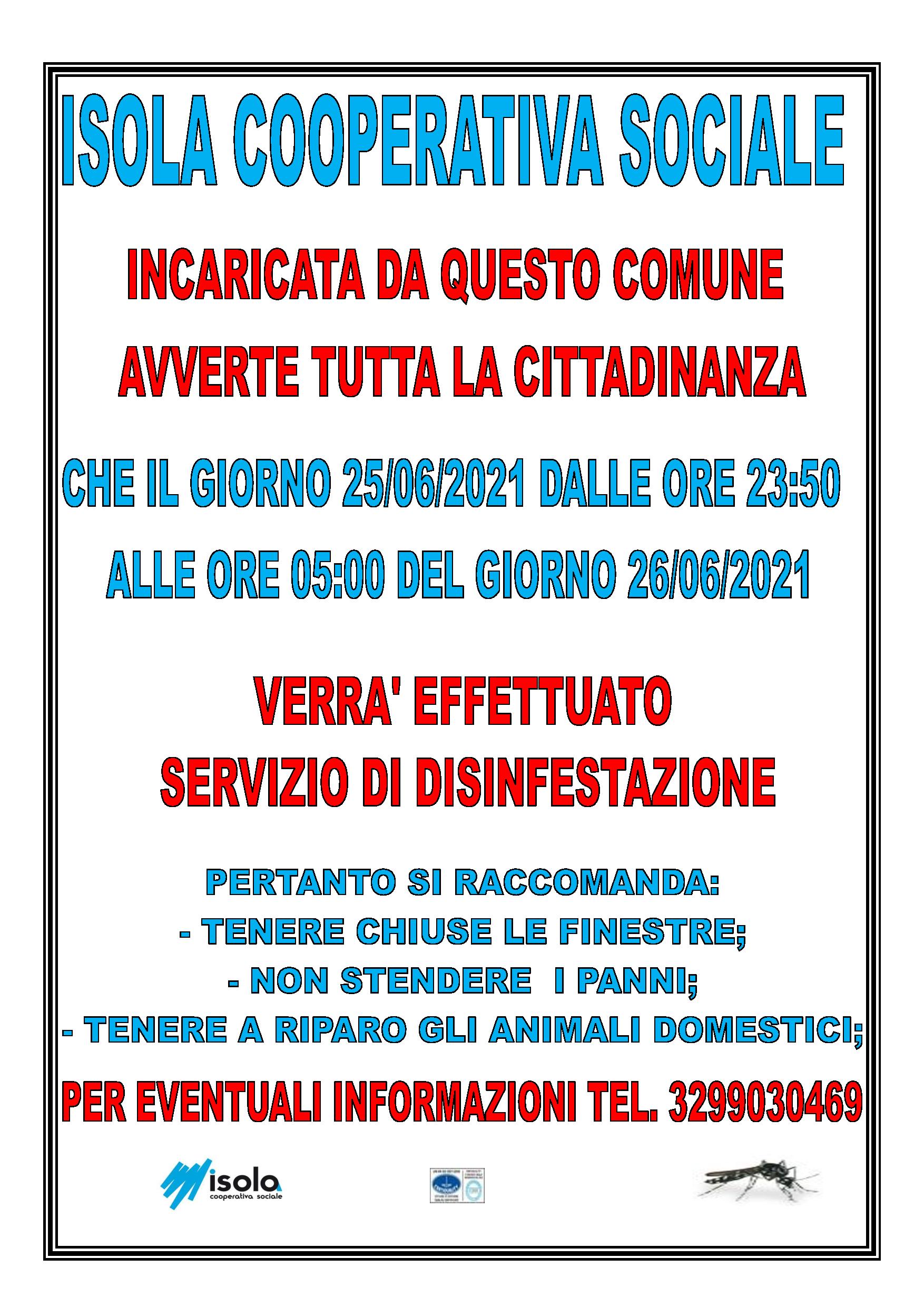 Stampa Condividi Facebook Twitter Whatsapp Telegram Email Servizio Disinfestazione 25 e 26 giugno Allegati: File Servizio disinfestazione 25-26 giugno 2021.jpg