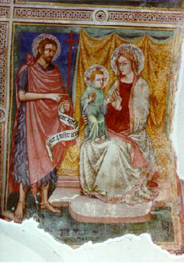 The thirteenth-century room was readapted to be decorated at the beginning of the fifteenth century but no written source ever mentions it as an ecclesial place. The misnomer of church, called della Piaggiola or Holy Mary, comes later, and refers to the local tradition. Different versions have been given on the same etymology of "piaggola": perhaps the name derives from "pagus", village, or from the raised position with respect to the city walls.