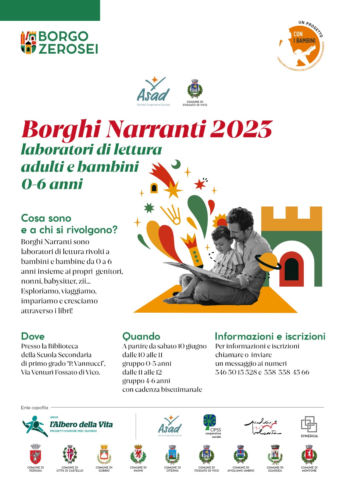 Al via presso la Biblioteca della Scuola Secondaria di Primo Grado "P. Vannucci" a Fossato di Vico i laboratori di lettura “Borghi Narranti 2023” rivolti a bambini e bambine 0-6 anni 0-6 anni accompagnati da genitori, nonni, baby sitter, ecc…